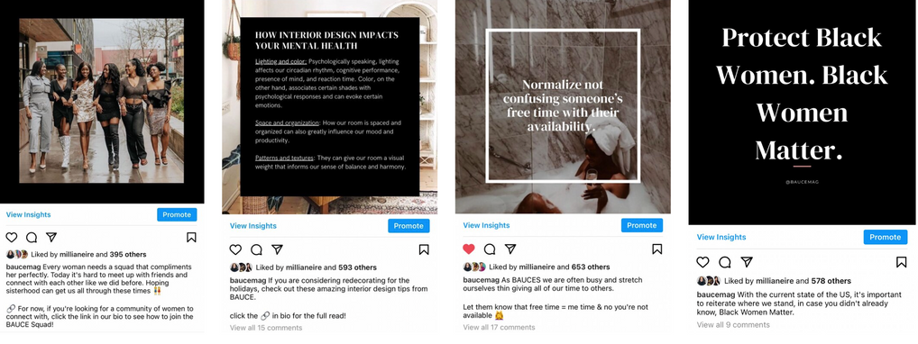 Samples of my copywriting, meme creation, graphics and community engagement across BAUCE Magazine's Instagram during my time as a freelance social media manager.